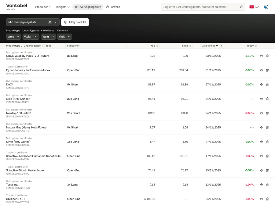 Har du allerede en konto?Log indellerOpret kontoTitleMrMrsFornavnEfternavnE-mail-adresseAdgangskodeJeg har læst og accepterer Vilkår og betingelser for brugOpret kontoOpret og administrer din overvågningsliste over strukturerede produkter1 / 0