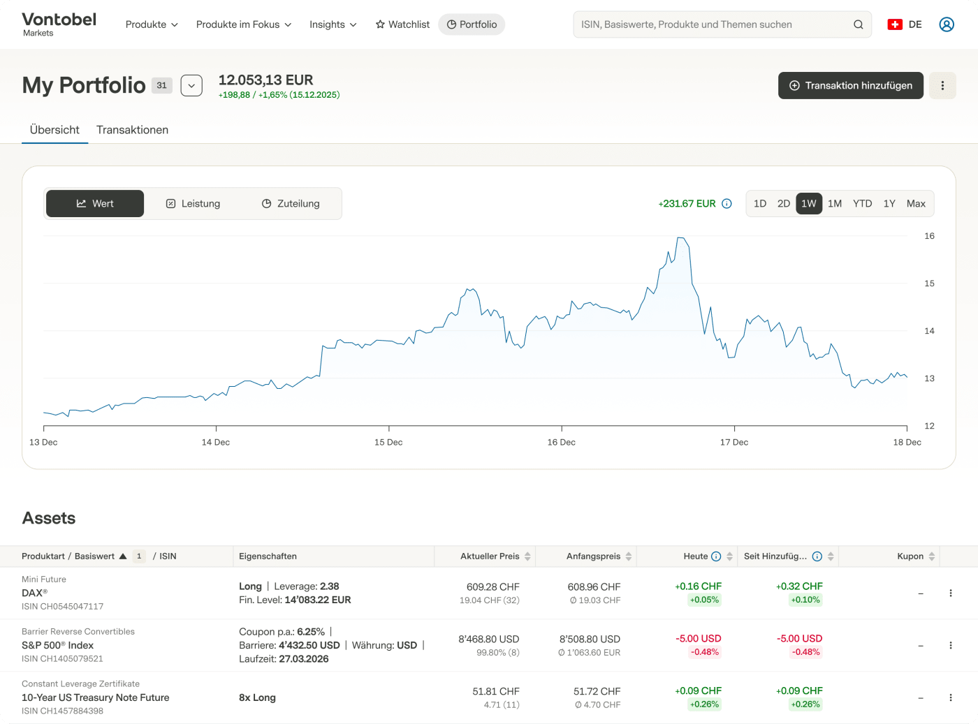 Haben Sie bereits ein Benutzerkonto?AnmeldenoderBenutzerkonto erstellenTitleHerrFrauVornameNachnameE-Mail AdressePasswortIch habe die Bedingungen gelesen und akzeptiere sieAllgemeine GeschäftsbedingungenBenutzerkonto erstellenÜberwachen Sie die Performance Ihres Anlageportfolios2 / 0