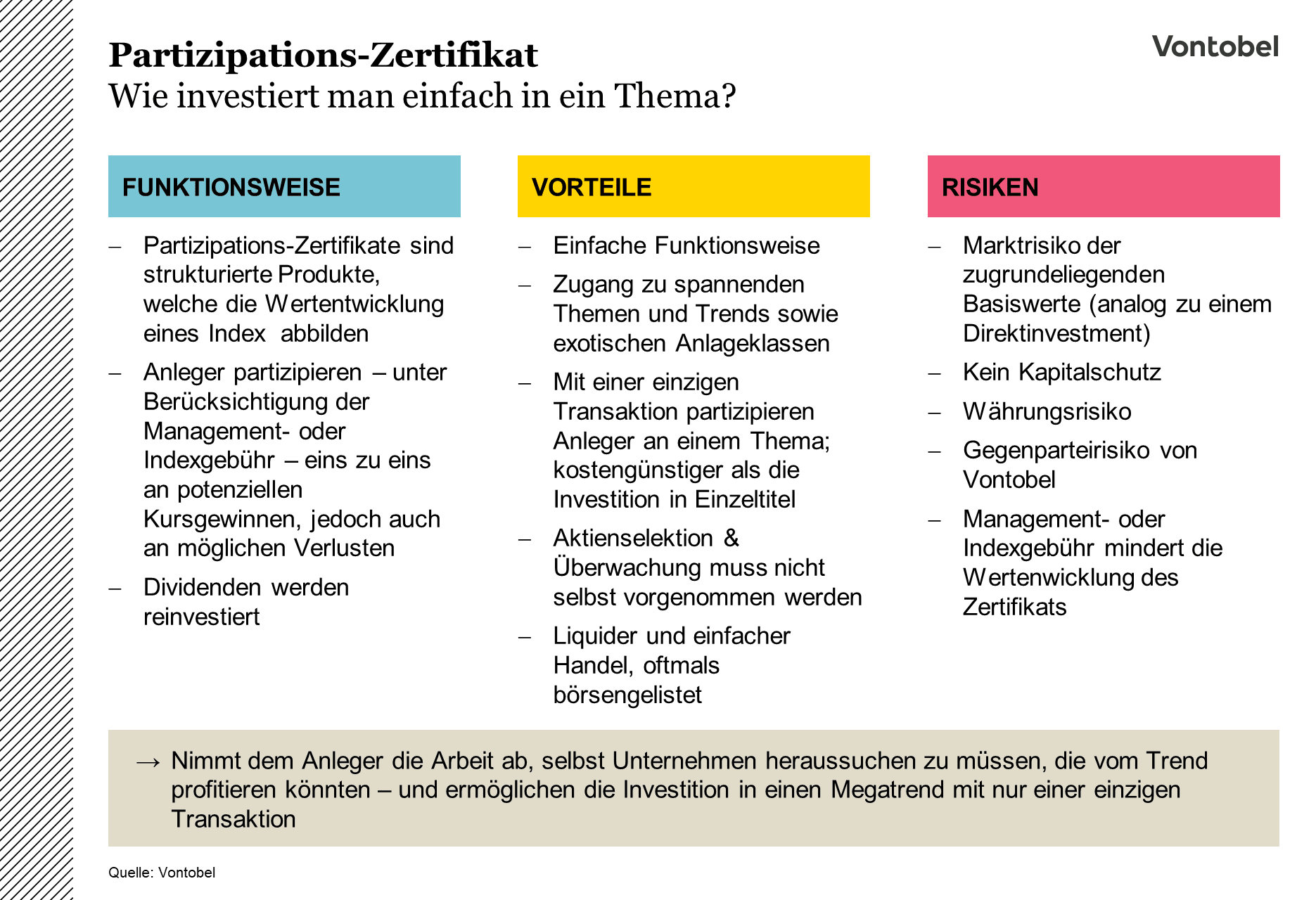 Vontobel gilt als einer der Pioniere im Bereich von ESG-Investments – denn Kunden und Anleger können schon seit den 1990er Jahren von nachhaltigen Anlagelösungen von Vontobel profitieren. Mehr als 25 Jahre nach der Lancierung der ersten nachhaltigen Anlagelösung ergreifen wir bei Vontobel immer noch die Initiative, um über die vor uns liegenden Herausforderungen zu sprechen, aber auch um unseren Kunden zu zeigen, wie dieser historische Transformationsprozess einzigartige Chancen für Anleger schafft.