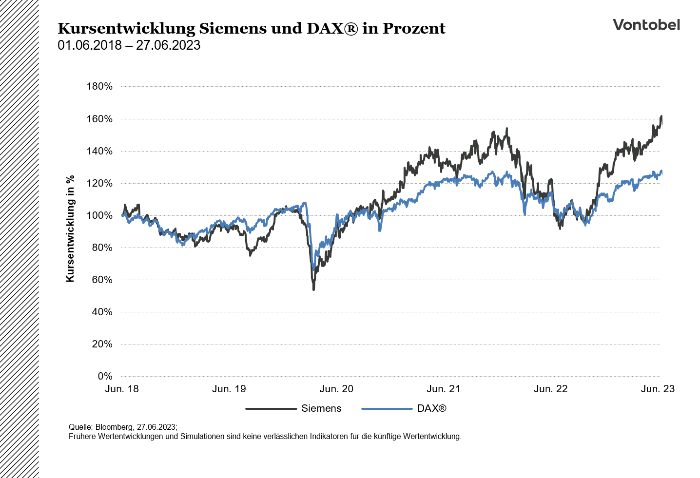 Diese Information ist weder eine Anlageberatung noch eine Anlagestrategie- oder Anlageempfehlung, sondern Werbung. Die vollständigen Angaben zu den Wertpapieren, insbesondere zur Struktur und zu den mit einer Investition verbundenen Risiken, sind in dem Basisprospekt, nebst etwaiger Nachträge, sowie den jeweiligen Endgültigen Bedingungen beschrieben. Der Basisprospekt und die Endgültigen Bedingungen stellen das allein verbindliche Verkaufsdokument der Wertpapiere dar. Es wird empfohlen, dass potenzielle Anleger diese Dokumente lesen, bevor sie eine Anlageentscheidung treffen, um die potenziellen Risiken und Chancen der Entscheidung, in die Wertpapiere zu investieren, vollständig zu verstehen. Die Dokumente sowie das Basisinformationsblatt sind auf der Internetseite des Emittenten, Vontobel Financial Products GmbH, Bockenheimer Landstraße 24, 60323 Frankfurt am Main, Deutschland, unter prospectus.vontobel.com veröffentlicht und werden beim Emittenten zur kostenlosen Ausgabe bereitgehalten. Die Billigung des Prospekts ist nicht als Befürwortung der angebotenen oder zum Handel an einem geregelten Markt zugelassenen Wertpapiere zu verstehen. Bei den Wertpapieren handelt es sich um Produkte, die nicht einfach sind und schwer zu verstehen sein können. In dieser Information sind Angaben enthalten, die sich auf die Vergangenheit beziehen. Die frühere Wertentwicklung ist kein verlässlicher Indikator für künftige Ergebnisse.