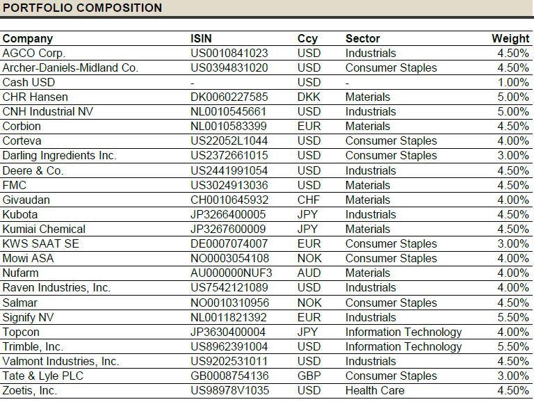 Besonders in Regionen stark mit stark wachsender Bevölkerung, wie China und Indien, nimmt die Sicherstellung der Grundversorgung mit Nahrungsmitteln einen hohen Stellenwert ein. Gezielte Investments in Smart Farming werden dort deshalb auch durch Förderungen des Staates subventioniert. Das Strategiezertifikat bezogen auf den Smart Farming & FoodTech Index bildet die Wertentwicklung eines Referenzportfolios ab, welches von der Wealth Management Division der Bank Vontobel aktiv verwaltet wird. Das Portfolio vereint internationale und gut kapitalisierte Unternehmen, die im Smart Farming-Bereich tätig sind. Durch ein Investment in das Zertifikat können Anleger an einem wachsenden Zukunftsmarkt partizipieren.