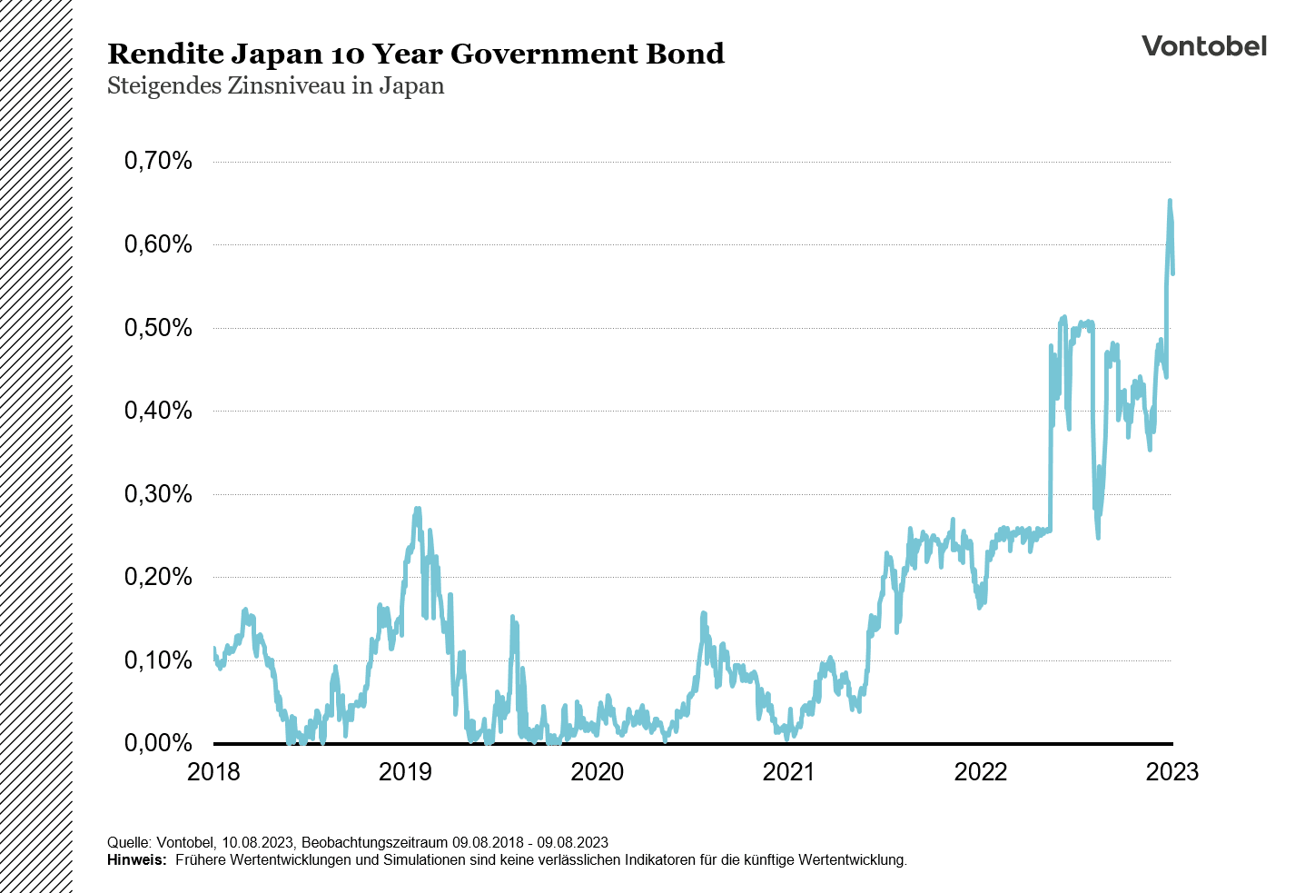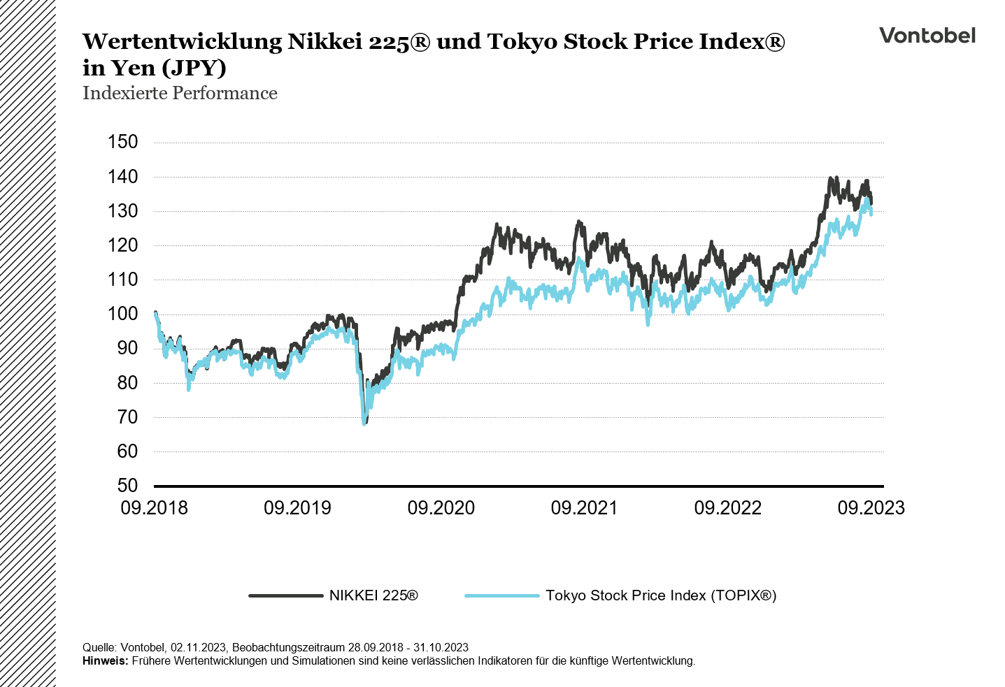 Für Anleger, die gezielt auf eine Auswahl von Unternehmen setzen möchten, die verglichen mit dem NIKKEI 225® vereinzelte Unternehmen und Branchen höher gewichtet und besonders vom veränderten makroökonomischen Umfeld in Japan profitieren könnten, könnte der «Vontobel Japan Equity Strategy Index» eine interessante Alternative sein. Ferner könnte das Produkt für solche Anleger geeignet sein, die sich nicht genauer mit Aktien von japanischen Unternehmen auseinandersetzen möchten, allerdings dennoch ein Sektorexposure aufbauen möchten.