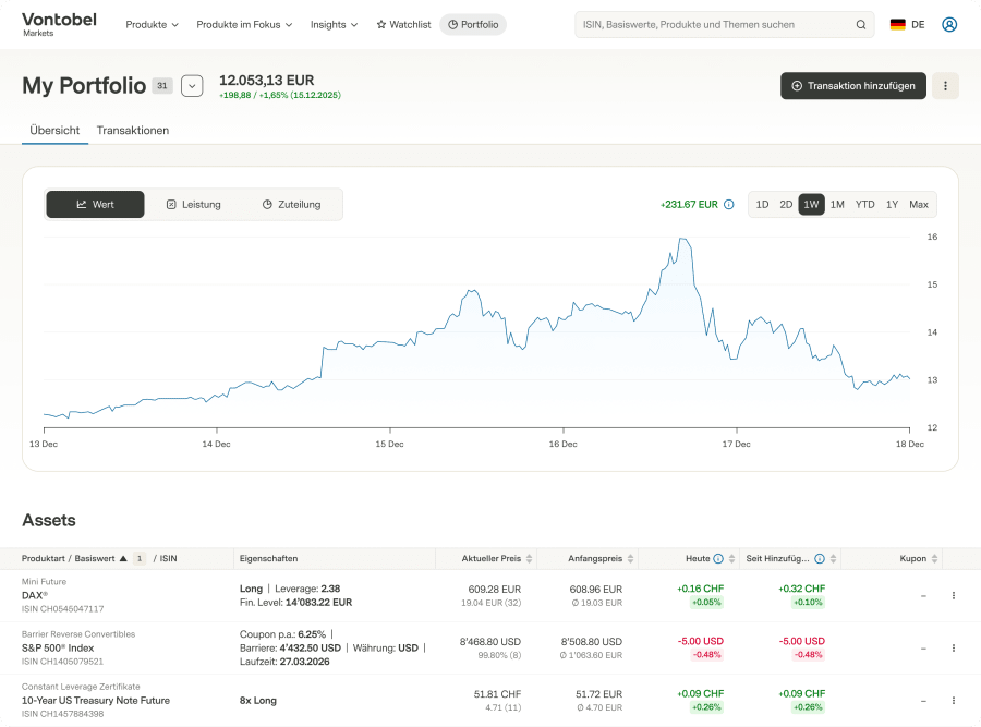 Haben Sie bereits ein Benutzerkonto?AnmeldenoderBenutzerkonto erstellenTitleHerrFrauVornameNachnameE-Mail AdressePasswortIch habe die Bedingungen gelesen und akzeptiere dieAllgemeine GeschäftsbedingungenMarkets Benutzerkonto erstellenÜberwachen Sie die Performance Ihres Anlageportfolios2 / 0