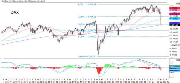 In the weekly chart, one can also see how DAX closed on MA200. Will it hold?