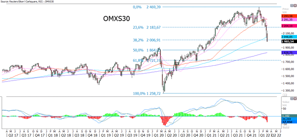 OMXS30 closed last Friday below the psychologically important two 000-level. From the top on January 4, the index is down 19,3 percent.