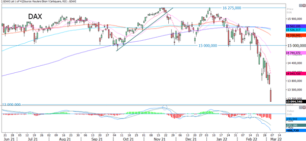 DAX (in EUR) June 15, 2021, to March 4, 2022