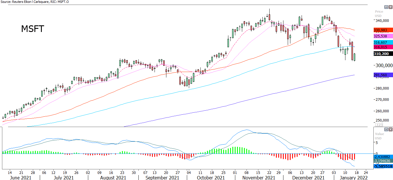 Microsoft share price graph: June 15, 2021, to January 14, 2022