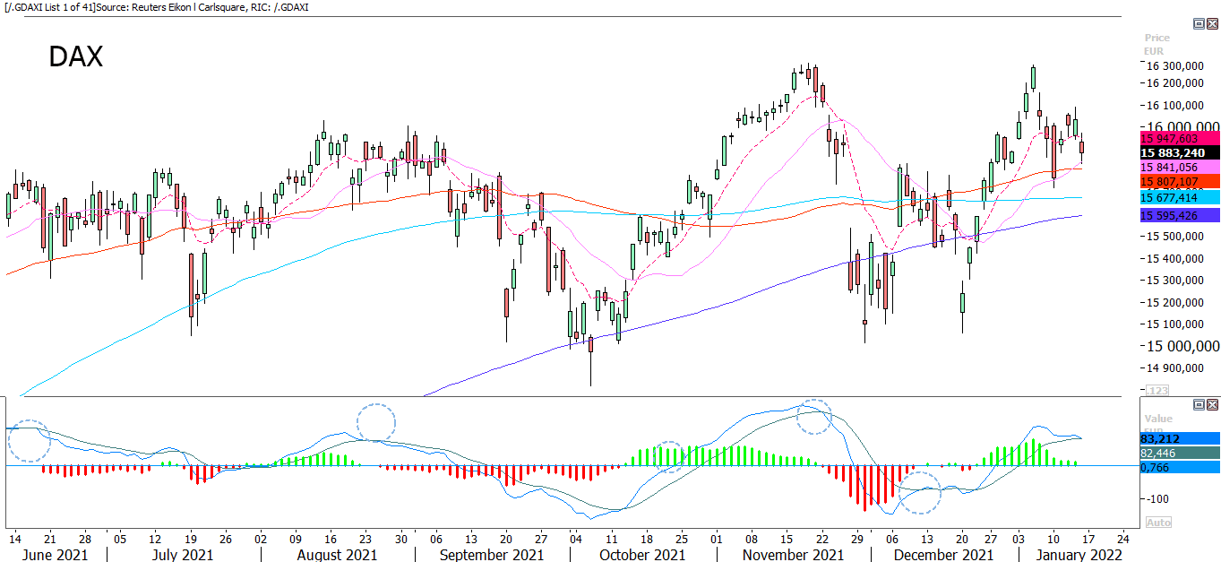 DAX price graph: June 15, 2021, to January 14, 2022