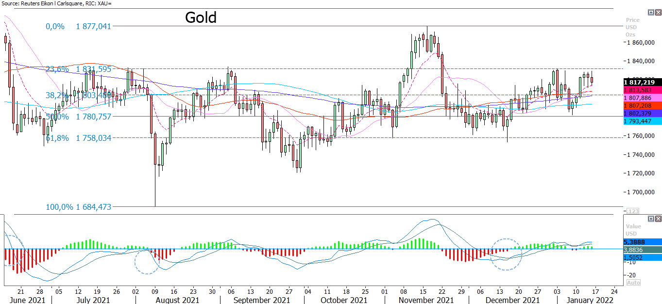 Below is the gold price that turned lower on Thursday, January 13, after a strong start of the previous week. The 1830-level seems challenging to break even though inflation is persistent and the USD is weakening. Does that mean that we will see the next move be downwards?