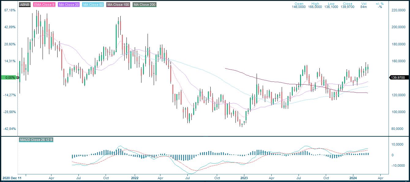 Airbnb posted Q4 2023 earnings that beat Wall Street analysts' forecasts. The Easter effect is expected to support Q1 2024 numbers. Airbnb has several qualities that make it a good investment. These include its pricing, its expansion outside the US, but also its share buyback programme, which is supported by healthy financials.