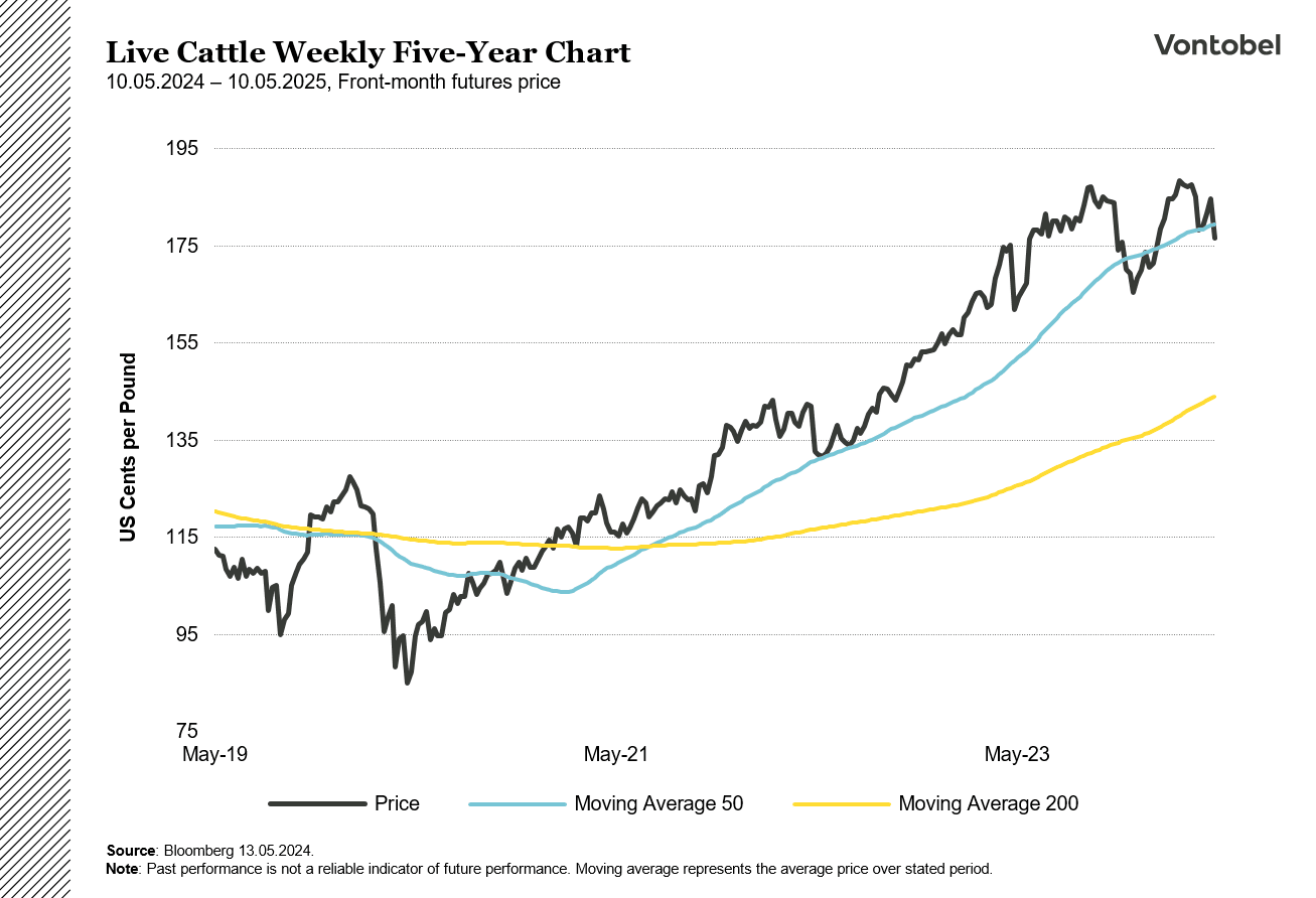 Live cattle prices have had a bit of a rollercoaster ride over the past year, with futures trading between 160 cents per pound up to 190 cents per pound which are near all-time highs. The cattle market, like other agricultural markets, is characterized by a strong correlation to weather, disease and other market factors.