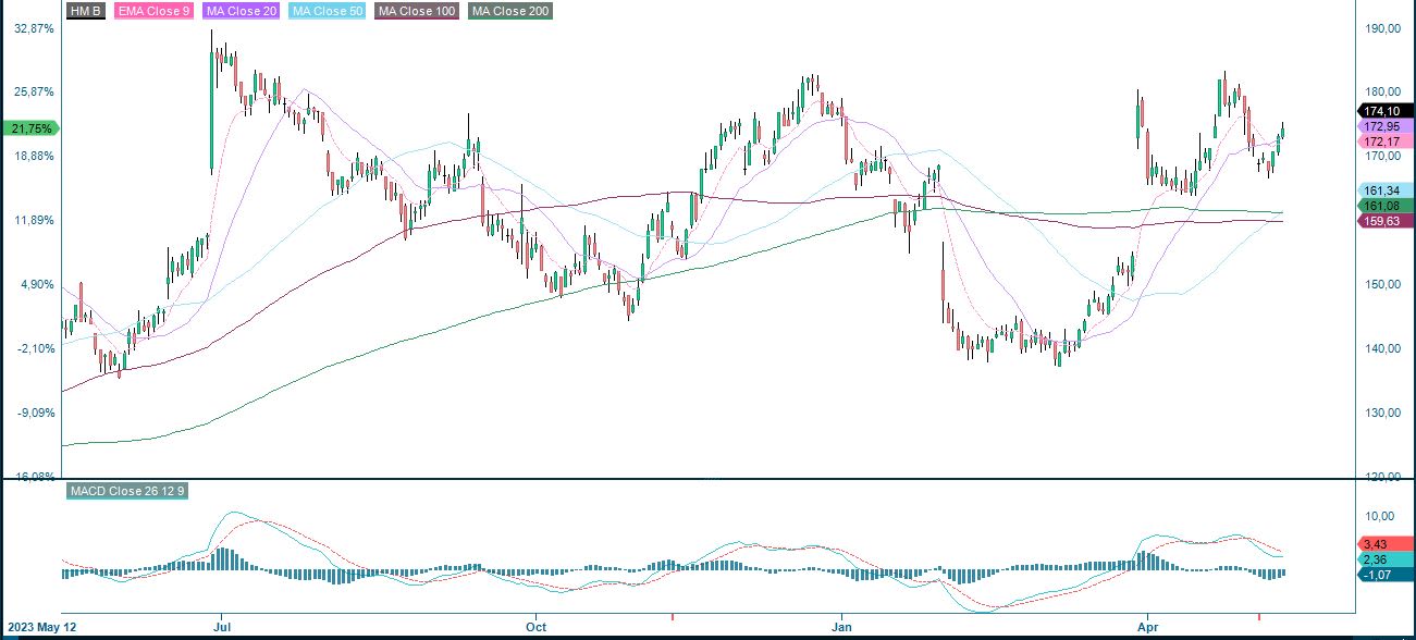 As a result of the low earnings in 2023 (earnings per share of SEK 5.35), this was lower than the dividend to shareholders of SEK 6.50 per share. The dividend represents a yield of almost 4% on the current share price. If H&M could improve its operating margin to 10%, the company's earnings per share would rise to around SEK 8.80 per share and there would be an opportunity to start buying back shares in the company in addition to the dividend.