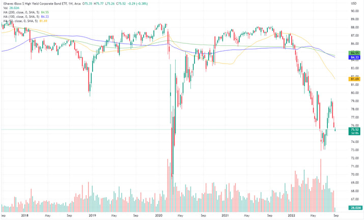 US HYG ETF (in USD), a weekly five-year price chart