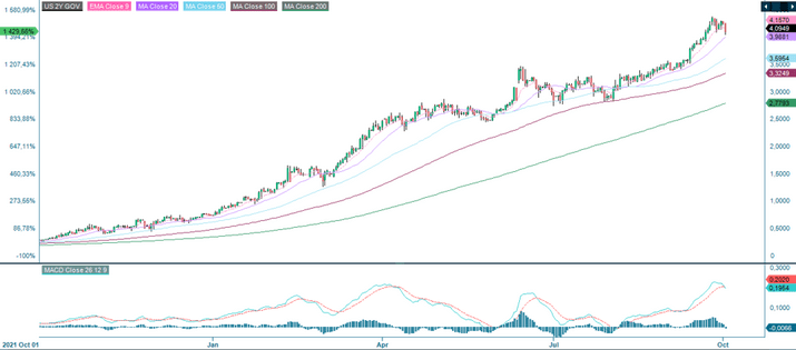 US 2 Year Treasury yield (in %), a daily one-year price chart