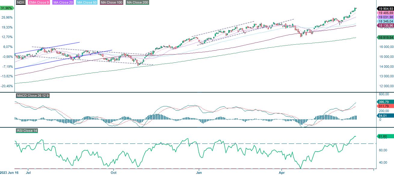 RSI for Nasdaq 100 is also indicating overbought levels, and so is the case for many of the Mag7-stocks. A short sell-off driven by profit taking is not unlikely.