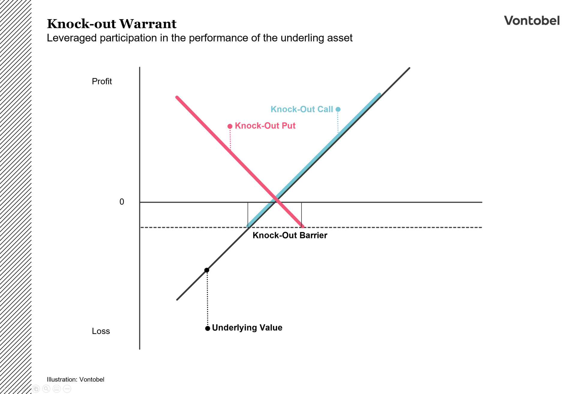 If the price of the underlying reaches or falls below the knock-out barrier during the observation period, the Knock-out Warrant expires worthless immediately. The knock-out barrier is continuously monitored from the initial fixing date.