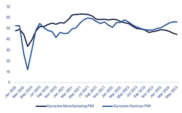 Eurozone Purchasing Managers' Index from January 2020 to May 2023