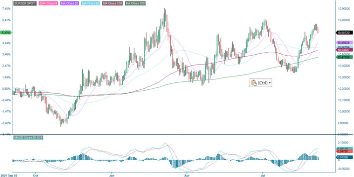Could the EUR/SEK drop again from its resistance at 10.70 to10.80?