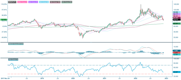 Brent Crude Oil (in USD), a five-year chart from November 2017 to November 2022