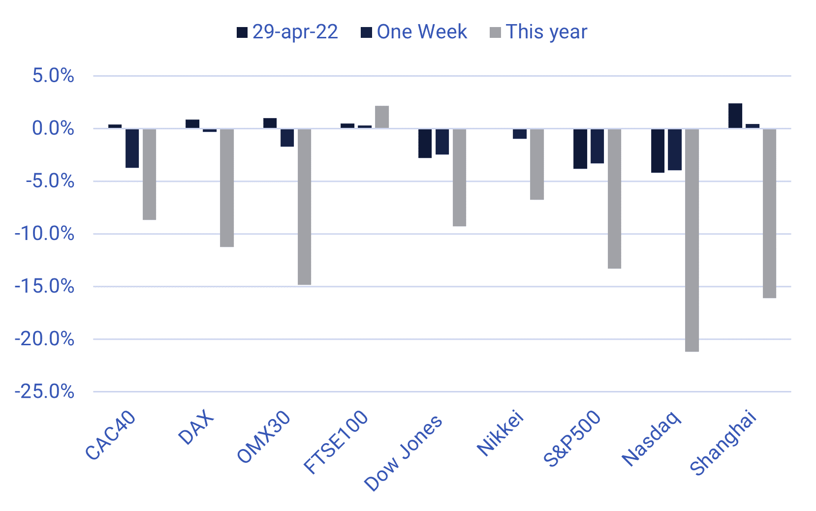 With 55 percent of S&P500 companies reporting their Q1 2022 results, 80 percent have beat analysts' forecasts. The corresponding figure for higher-than-expected revenues is 72 percent. But tech companies as a group did not perform very well last week. But tech companies as a group did not perform very well last week. Especially the Amazon result was a big disappointment compared to a challenging comparative period last year.