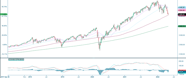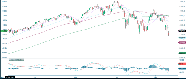 At the same time, the Shanghai stock exchange recorded a positive trend break last week. Japan and China's central banks are now stimulating the economy, unlike the Fed in the US. However, on Saturday, April 30, weak Chinese Factory Purchasing Index figures were released (down from 49.3 in March to 47.4 in April). Covid shutdowns have had an impact.