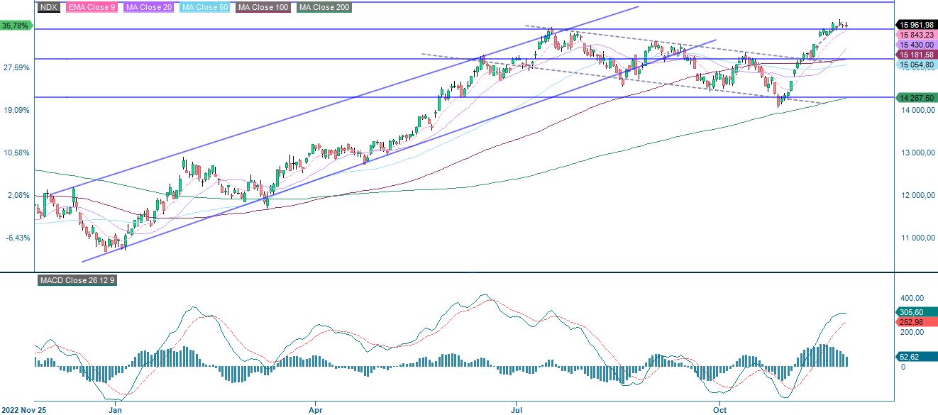 Nasdaq 100 (USD), yhden vuoden vuorokausikaavio