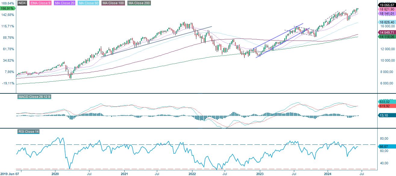 Nasdaq 100 (USD), viiden vuoden viikkokaavio