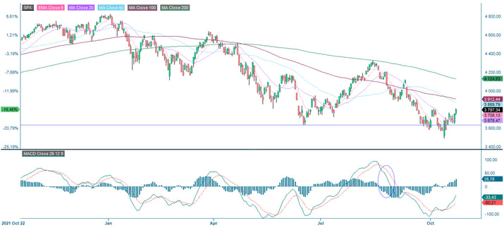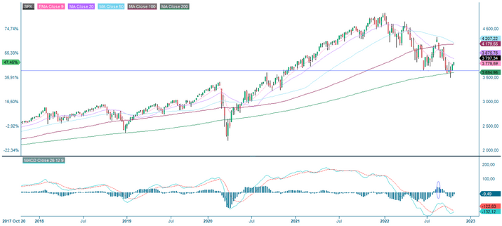 This week we have several heavy weights. Among those is Alphabet realizing its quarterly report today, followed by Microsoft tomorrow, and Apple and Amazon on Thursday, 27 October. Ahead of this, the S&P 500 index has bounced off its lows. Will the Q3 2022 reports support further gains?