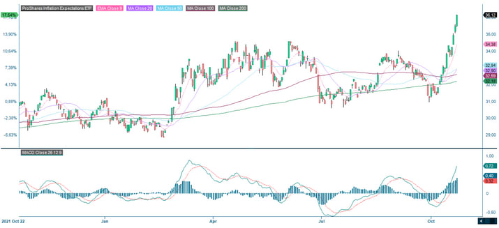 ProShares Inflation Expectations ETF (in USD), daily one-year price chart
