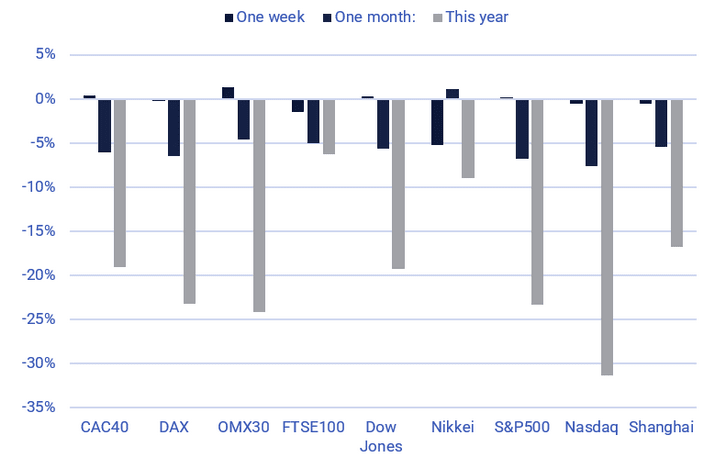 However, despite the described long-term sentiment, we may have entered into a short-time rebound phase for the US and European stock markets. The USD/SEK has weakened slightly, and, above all, the US 2-year and 10-year Treasury yields recoiled by 9 and 14 bps on Monday, 3 October. The stock market is starting to price in a recession. In our view, the 2-year US Treasury rate is a better leading indicator of inflation expectations compared to the 10-year rate. Today’s exceptionally high inflation rate is expected to decline sooner or later. We have seen a few signs of lower raw material and transportation costs lately. After all, how should consumers afford all these increasing prices? They must adopt and decrease their spending and consumption accordingly.