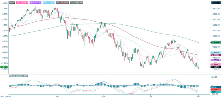 Technically, the Nasdaq index has rebounded to 10,740 at the time of writing, some 0.9% higher than the low of 10,646 reached on 16 June. Today's level is thus close to support (albeit it looks very fragile). The closest the Nasdaq was to today’s price levels was in October-November 2020, after a quick rebound from the Covid pandemic bottom in March 2020.