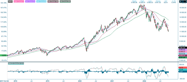 Nasdaq Index (in USD), a weekly five-year share price chart