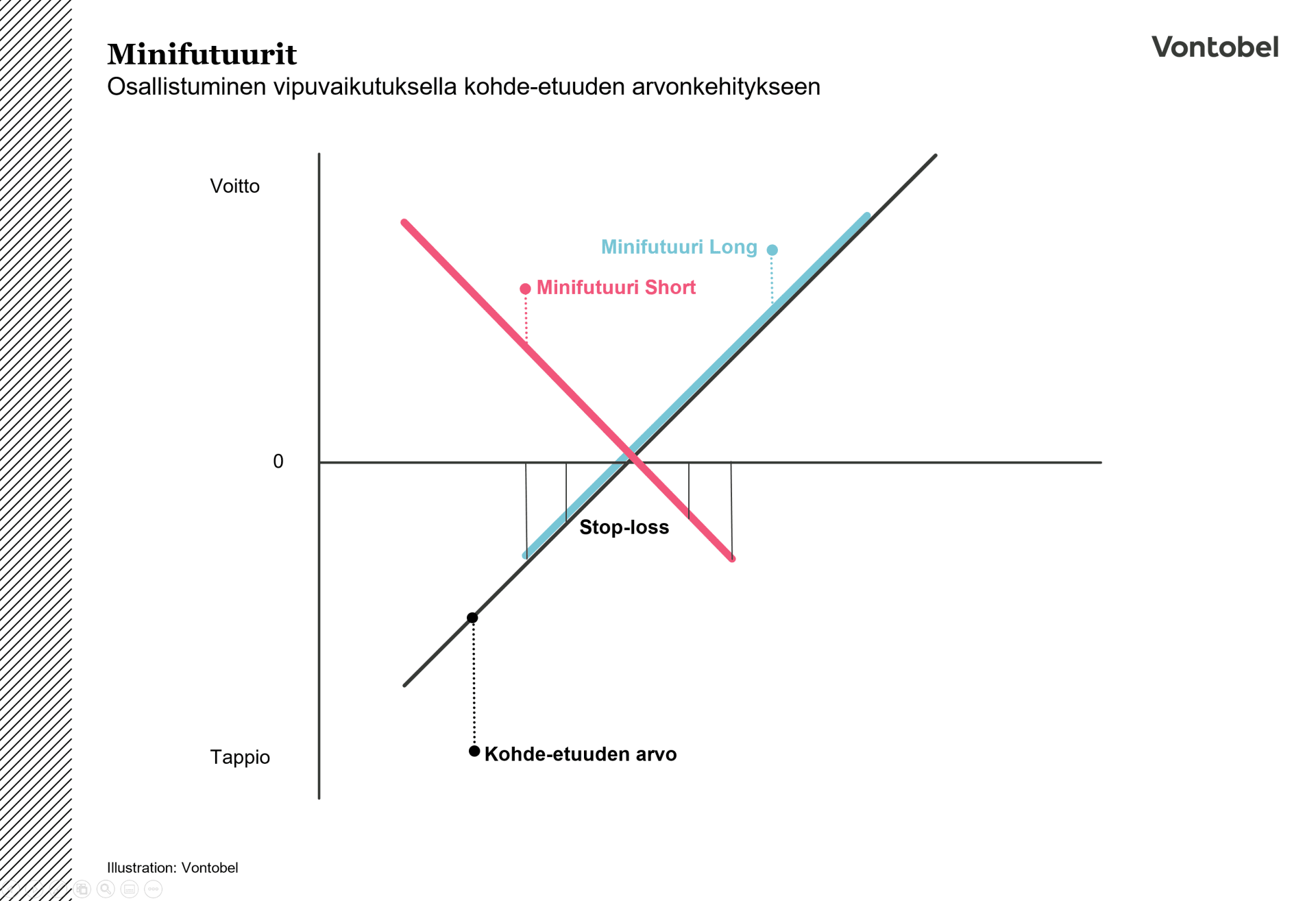 Minifutuurit tarjoavat sijoittajille mahdollisuuden osallistua suhteettomasti - vipuvaikutuksella - kohde-etuuden kehitykseen pienellä pääomasijoituksella. Minifutuuri Longia voidaan käyttää spekuloimaan nousevia markkinoita, kun taas Minifutuuri Shorttia voidaan käyttää spekuloimaan laskevia markkinoita. Tuotteilla on rajoittamaton voimassaoloaika edellyttäen, että tuote ei saavuta stop-loss tasoaan (tai stop-loss barrieria).
