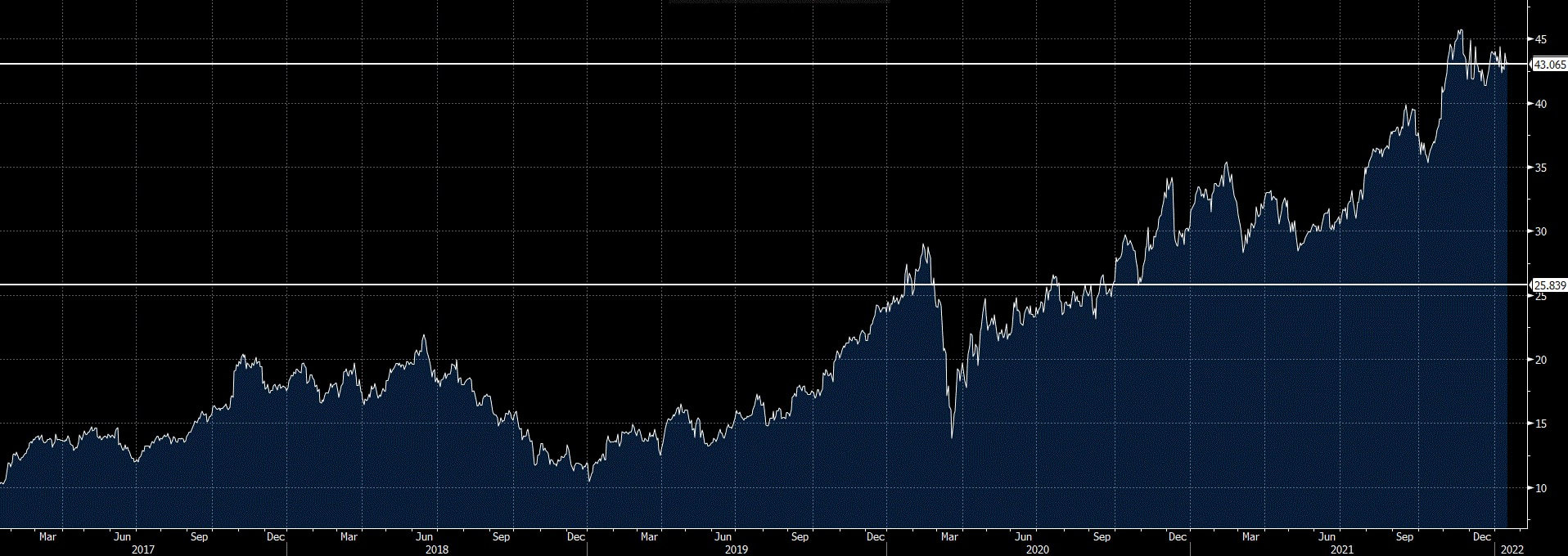 Il 2022 si è aperto con una lieve correzione dei principali indici di Borsa a livello globale scatenata principalmente dall’aumento dell’inflazione (attualmente si attesta al 7% negli Stati Uniti e al 5% nell’Eurozona) e al miglioramento della situazione economica, due fattori che portano come conseguenza diretta all’aumento dei tassi di interesse, che, almeno oltreoceano, potrebbe iniziare prima del previsto (già a marzo potrebbe esserci un primo aumento) e ad una graduale riduzione del bilancio della FED.