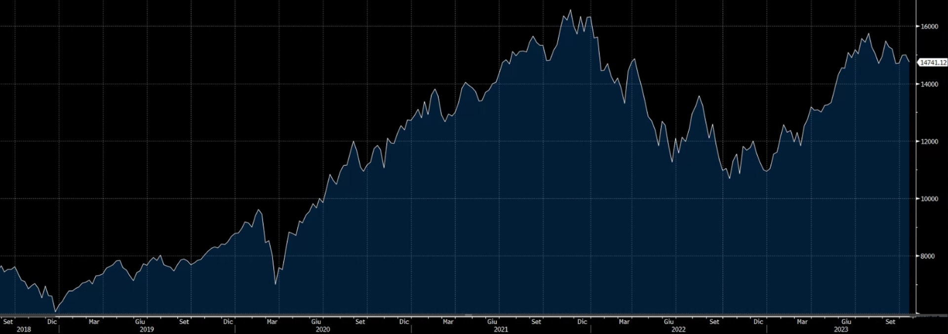 La stagione delle trimestrali dei titoli Tech entra nel vivo. Nel corso della settimana saranno alcuni dei player più importanti al mondo a diffondere i risultati dell’ultimo quarto. Martedì 24 sarà la volta di Microsoft e Alphabet, mercoledì 25 di Meta Platforms e giovedì 26 di Amazon. Se a livello generale Lori Calvasina, strategist di RBC Capital Markets, sottolinea come la stagione delle trimestrali sia partita con il piede giusto, Mislav Matejka, capo economista di JP Morgan, pensa che vi sia in atto una tendenza all’indebolimento delle previsioni di EPS. Secondo le stime di Bloomberg Intelligence, gli analisti prevedono un calo degli utili dello 0,8% nel terzo trimestre 2023 rispetto allo stesso periodo 2022. Guardando nello specifico ai titoli tecnologici, le Big Tech USA sono chiamate a dare delle risposte concrete dopo il rally di Borsa che ne ha caratterizzato l’ultimo anno. Guardando alle stime del mercato, tassi di crescita minori sul fronte dell’EPS dovrebbero riguardare Microsoft. Il consensus sul trimestre è a 2,65 dollari contro i 2,69 del secondo quarto e i 2,35 dollari riportati nel 2022. Discorso quasi analogo per Google, con stime poste a 1,45 dollari di utile per azione contro gli 1,44 dollari riportati nel secondo trimestre e gli 1,06 dollari di 12 mesi prima. Meta Platforms e Amazon dovrebbero essere invece le due realtà meglio capaci di recuperare sul fronte dell’EPS. La società fondata da Zuckerberg ha un consensus di EPS posto a 3,57 dollari, meglio dei 3,23 del secondo trimestre ma soprattutto quasi il 118% in più degli 1,64 dollari riportati nel terzo quarto 2022. Un raddoppio dell’EPS sui 12 mesi caratterizza le attese del mercato anche per quel che riguarda Amazon. In questo caso il consensus è di un dato a 0,58 dollari, contro gli 0,2 del 2022 ed gli 0,63 dollari del secondo trimestre.