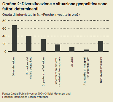 Per quanto riguarda la domanda futura dalle banche centrali, il trend strutturale di lungo periodo sembra rimanere intatto. Secondo il sondaggio Global Public Investor 2024 dell’Official Monetary and Financial Institutions Forum (OMFIF), la diversificazione e la situazione geopolitica ce potenziale incremento della domanda (specialmente dalle banche centrali dei ME). Sul fronte geopolitico, sembra che un ridotto sovrappeso sull’oro possa essere favorevole, laddove si verificassero eventi di rischio inattesi (Russia-Ucraina, Medio Oriente, elezioni USA).