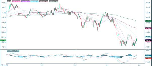 In Amazon's case, resistance is at the USD 125 level. If the stock manages to cross it, it is relatively free up towards USD 135.