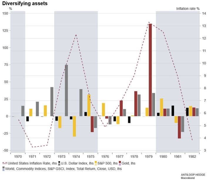 Amerikansk inflation och tillgångsklassernas prestation ( i USD) 1970 - 1982