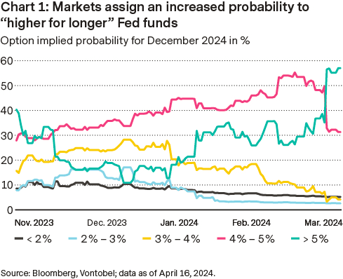 Stora delar av den amerikanska ekonomin fortsätter att visa tecken på stabilitet, även under en aggressiv penningpolitisk åtstramning. Avsaknaden av en omedelbar recession har lett till att marknaden förväntar sig en mer trögrörlig inflation. Multi Asset-teamet var skeptiskt till att inflationen skulle minska så snabbt som marknaden hade förväntat sig för inte så länge sedan och hävdade att den sista milen skulle vara den svåraste. Mycket beror på data från de kommande månaderna, inklusive när den första räntesänkningen kommer att ske och hur många sänkningar som kommer att göras i år. De flesta Fed-tjänstemän räknar med två eller tre räntesänkningar i år. En utdragen fördröjning av inflationsförbättringen, inflationsförväntningar som spårar ur eller en oväntad nedgång på arbetsmarknaden kan dock förändra situationen avsevärt.