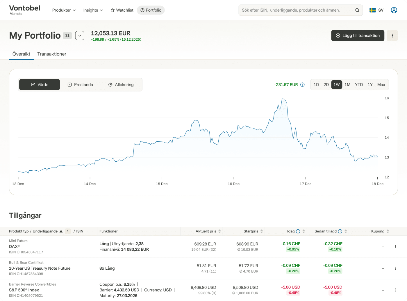 Har du redan ett konto?Logga inellerSkapa kontoTitleMrMrsFörnamnEfternamnE-postadressLösenordJag har läst och godkäntVillkor för användningSkapa kontoÖvervaka prestandan för din investeringsportfölj2 / 0